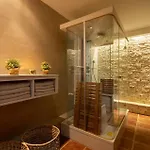 Bathroom facilities also include a shower. There are dryers for guests' comfort.